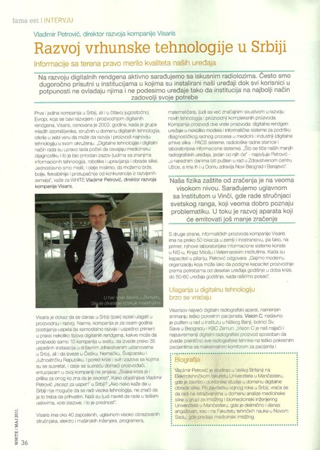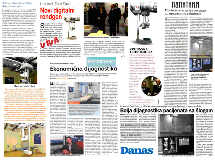 The Earth Communications organized targeted interviews for the managers of the company Visaris in the business weekly The Economist, and also in the medical monthly magazine White, placing key information about the benefits of the locally-made sophisticated high technology. We organized two inter-linked ribbon cutting ceremonies for the new digital X-ray in the largest Serbian centers, Nis and Belgrade, ensuring prompt coverage by all the local and national media in Serbia, while also sparkling internal circulation of information in the most important centers of radiology in Serbia. We employed integrated approach to place key information to all stakeholders.